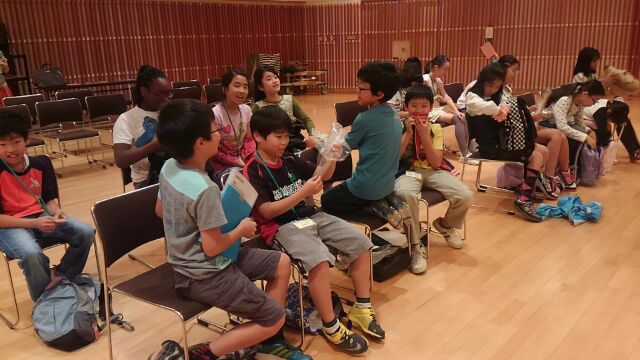 | オペラ「ラ・ボエーム」では子どもたちも登場して、2幕で元気に賑やかに歌います。 街の中をバタバタ走り回ったり、お母さんたちに叱られたりするというとても可愛くて微笑ましい場面なのですが、南大沢コミュニティオペラではその役を八王子市立上柚木小学校の合唱団有志の子どもたち17名が演じてくれます。 その子どもたち、練習前はこんな感じなのですが、 |