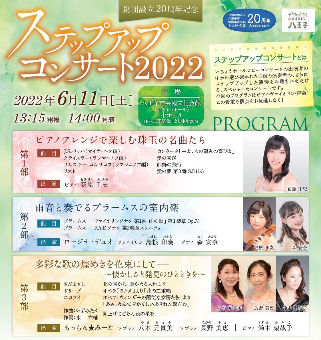 いちょうホールロビーコンサートの出演者の中から選び抜かれた3組の演奏者の、さらにステップアップした演奏をお聴きいただける、スペシャルなコンサートです。今回のプログラムはピアノ・ヴァイオリン・声楽!この貴重な機会をお見逃しなく!