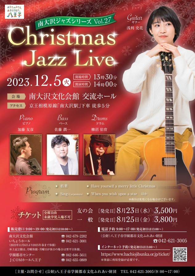 | 主催 | (公財)八王子市学園都市文化ふれあい財団 042-621-3005(9:00~17:00) |