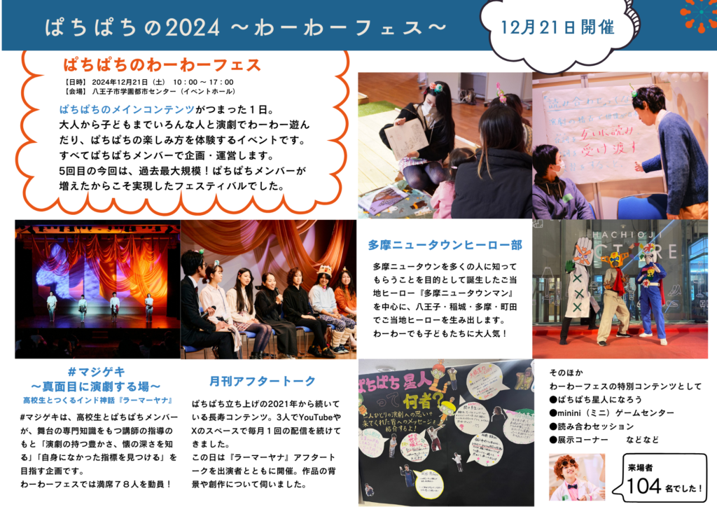 ▲ぱちぱちの年度替わりの集会「ぱちぱちA-GO GO!」(2025/3/18 八王子市クリエイトホールにて開催)にて発表しました。