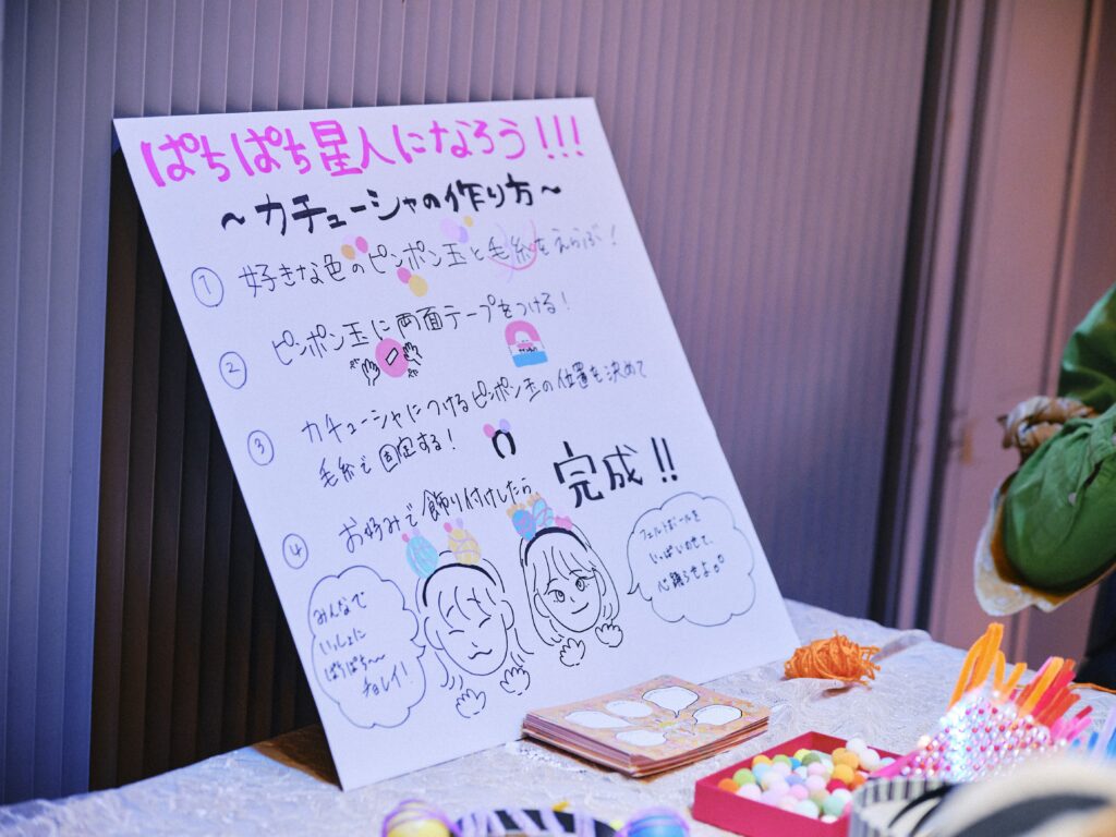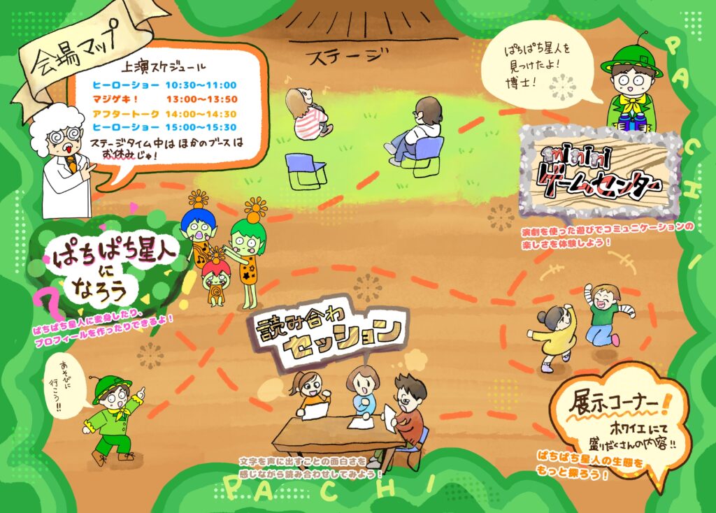 2024年は12月21日に八王子市学園都市センターイベントホールで実施しました。会場を「ぱちぱち星」に見立て、お客様が演劇の星を探検するというコンセプトです。