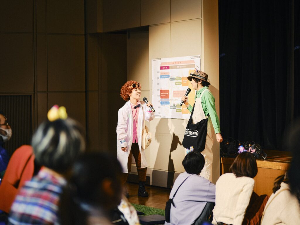 ぱちぱち星を探検する探検家ゆずぽんと博士というキャラクターに扮したゆずぽん(21)とまゆたそ(25)が、わーわーフェスの案内をします。