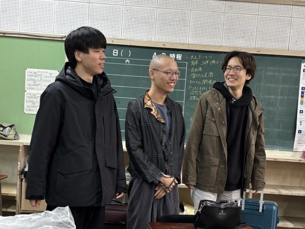 上演会場の第一中学校は竹内の母校です。上演場所として選んだ理由は、劇場が持つ「見る/見られる」のイメージを崩して、集まる人々がかつての同窓生のように自然にそこにいられる、心地よいサードプレイスのような場を作りたいという創作チームの思いがあるからです。