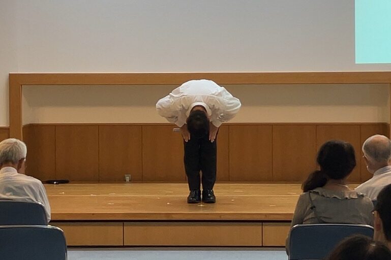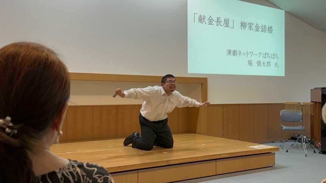 2025年8月3日(日)、『令和7年度 公民館平和事業「市民による平和への祈り」』において、ぱちぱちフェローの堀慎太郎さん(26)が国策落語の『献金長屋』という作品を独り芝居として上演しました。