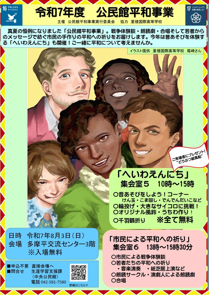 毎年8月に日野市で開催されている事業で、テーマは「平和と祈り」。毎年幅広い世代の市民が集まり、朗読や戦争体験談などを披露しています。今年はやなせたかしの絵本を題材にした朗読と演奏や、89歳の男性による1945年当時の戦争体験談の披露などが行われました。演劇ネットワークぱちぱちは2023年から参加しています。