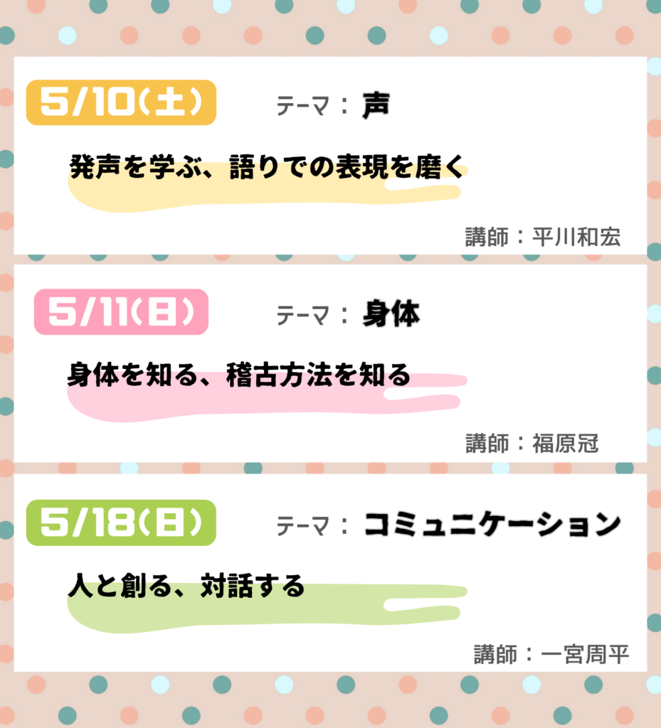 5月の土日、八王子で演劇との新たな向き合い方を発見して、仲間と出会い、一緒に演技を磨きましょう!