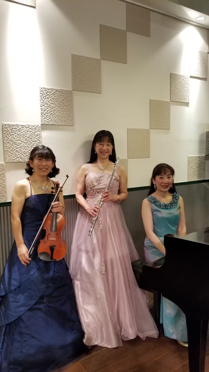 フルート&ヴァイオリン&ピアノのトリオは音色がとても華やかであり、旋律を担当する小関と阿部は基本的に暗譜で演奏いたします。