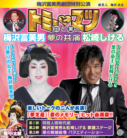 「白塗りの女王 梅沢富美男」と「黒の帝王 松崎しげる」ここに夢の共演が実現!芝居に歌に舞踊ショーに、ボリューム満点の公演をぜひ会場でお楽しみください!