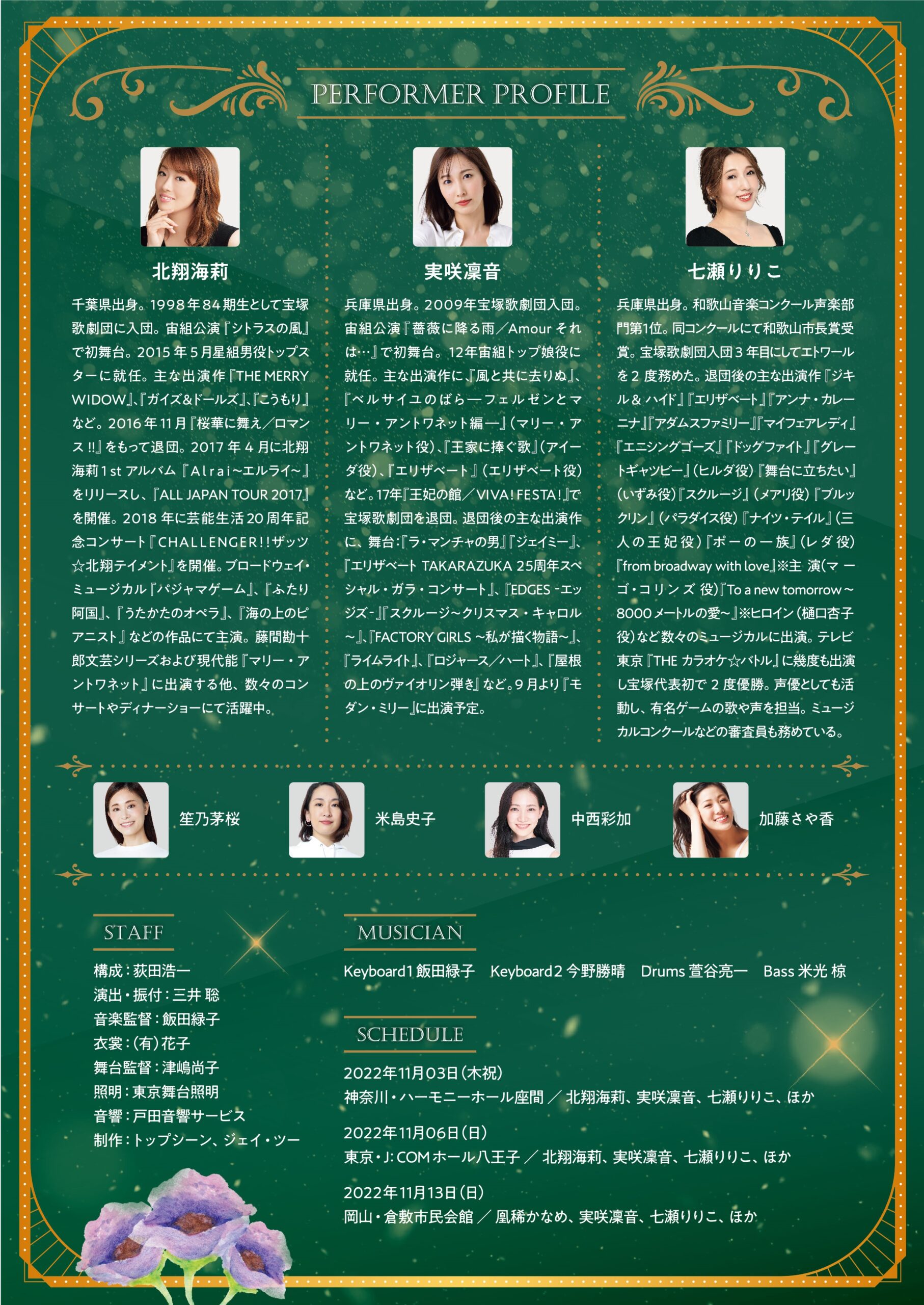 宝塚歌劇団OGがお届けする、歌と踊りのステージ!