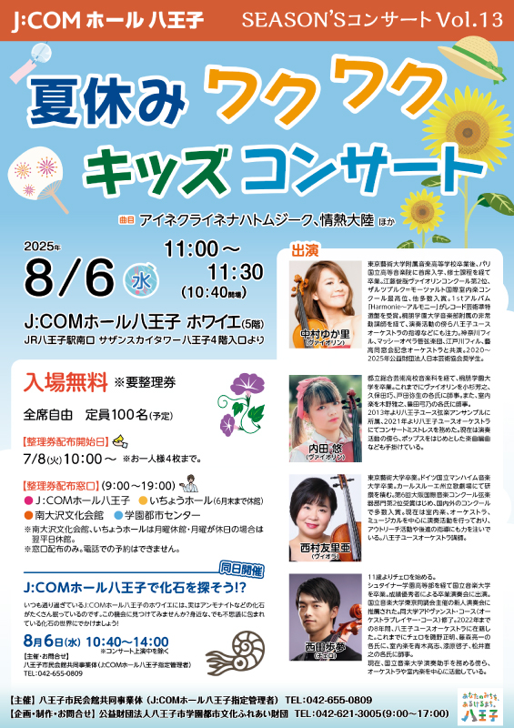 【終了しました】J:COMホール八王子 SEASON’Sコンサート Vol.13 夏休みわくわくキッズコンサート