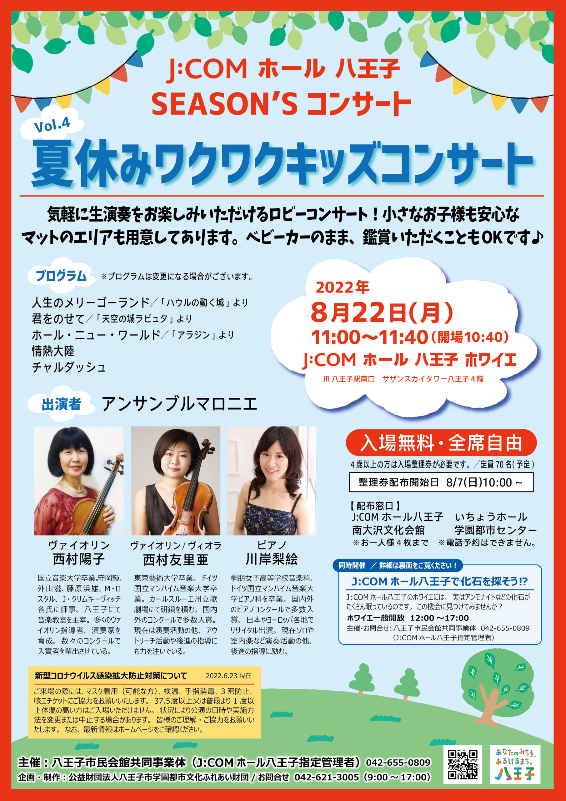 J:COMホール八王子 SEASON’Sコンサート Vol.4 夏休みワクワクキッズコンサート