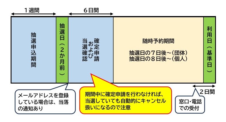 抽選申込期間:利用日の2か月前応当日7日前から1日前まで