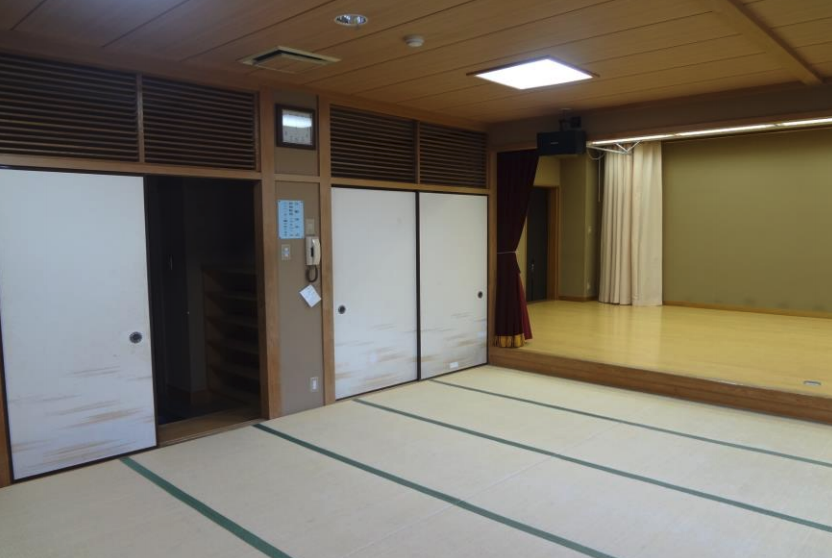 | 和室1 (舞台付) | 18畳 | 48名 | 踊りや趣味の集いにご利用ください。 和室1、2の間仕切りを開放し、ひと部屋(大部屋)として利用することもできます。 | ||