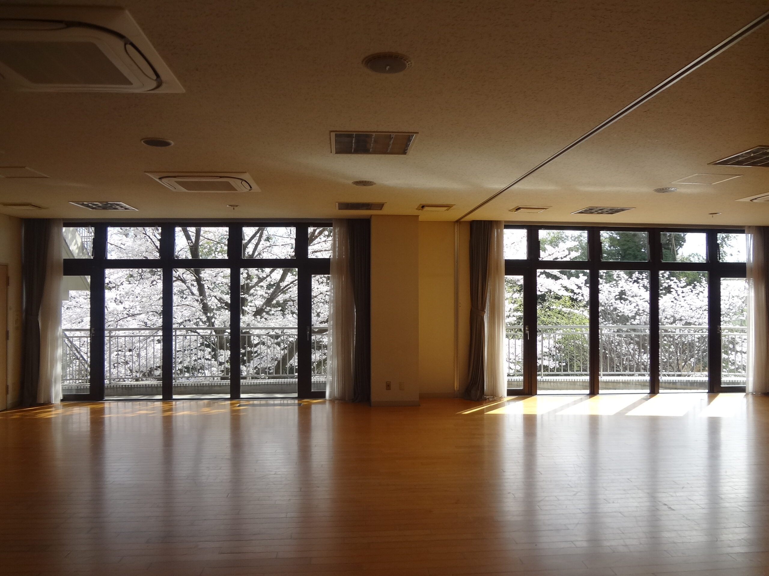 | 多目的室1 | 65㎡ | 72名 | 各サークルなどのコミュニケーションの場としてご利用ください。パーティションを開放し、ひと部屋(大部屋)として利用することもできます。 多目的①:移動式大鏡、多目的②:壁面大鏡あり。 | ||