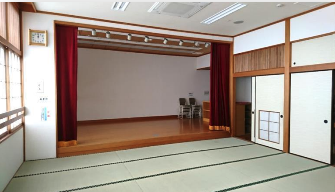 | 和室1 (舞台付) | 18畳 | 60名 | 趣味の会、各団体などの集いにご利用ください。 | ||