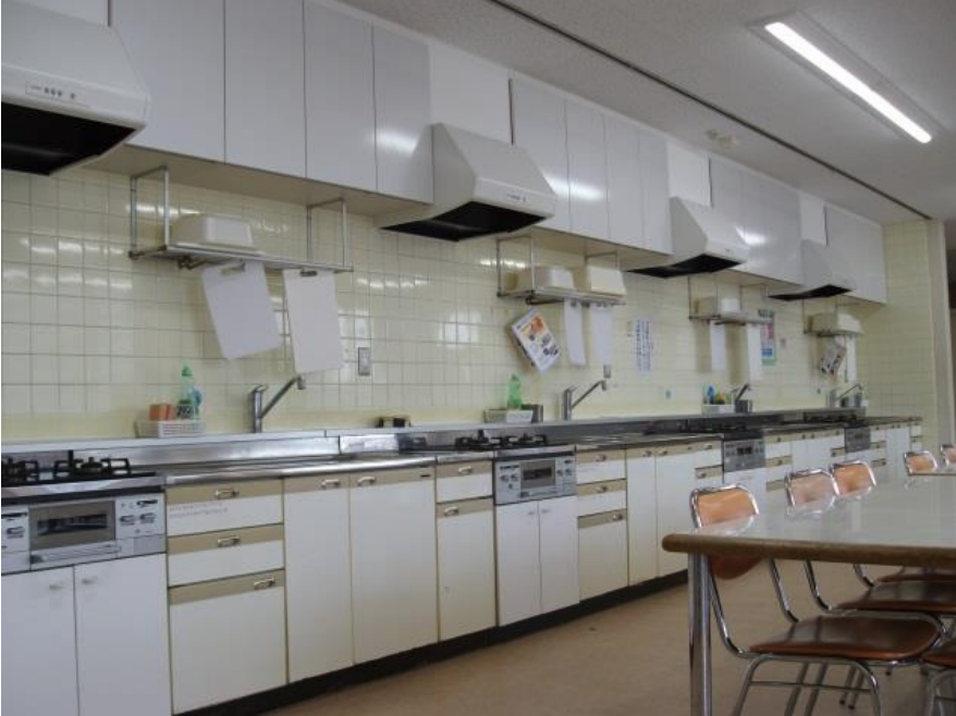 | 3階 | 有料 施設 | 調理室 | 105㎡ | 54名 | 料理講習会やお菓子作り、集会・会議などにご利用ください。 |