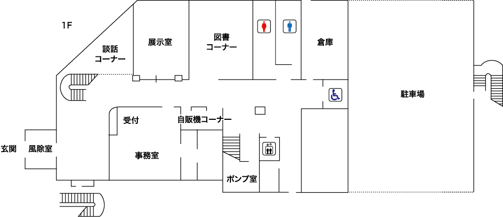 | 1階 | 無料 施設 | 談話コーナー | 36㎡ | 待ち合わせなどにご利用ください。 | |