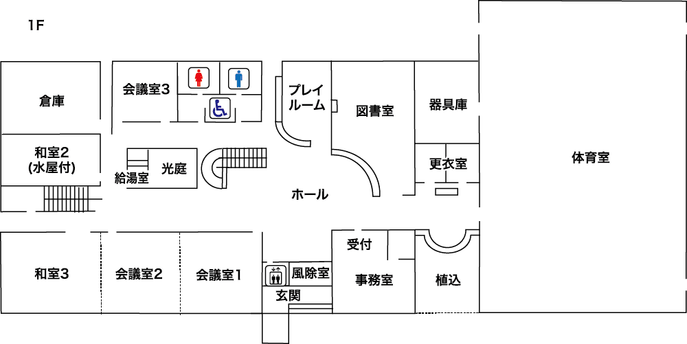 | 体育室 | 477㎡ | バドミントン・卓球・バレーボール・講演会などにご利用ください。 更衣室あり。 | |||