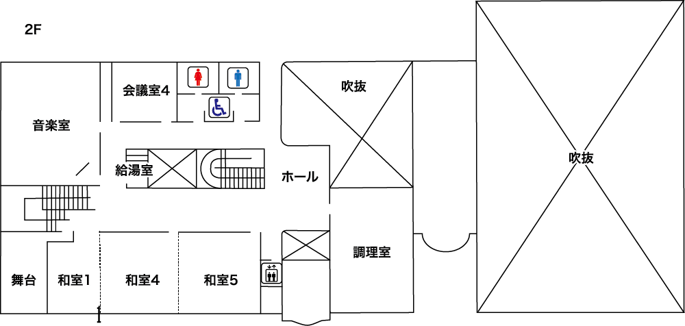 | 音楽室 | 75㎡ | 30名 | 楽器の練習などにご利用ください。 | ||