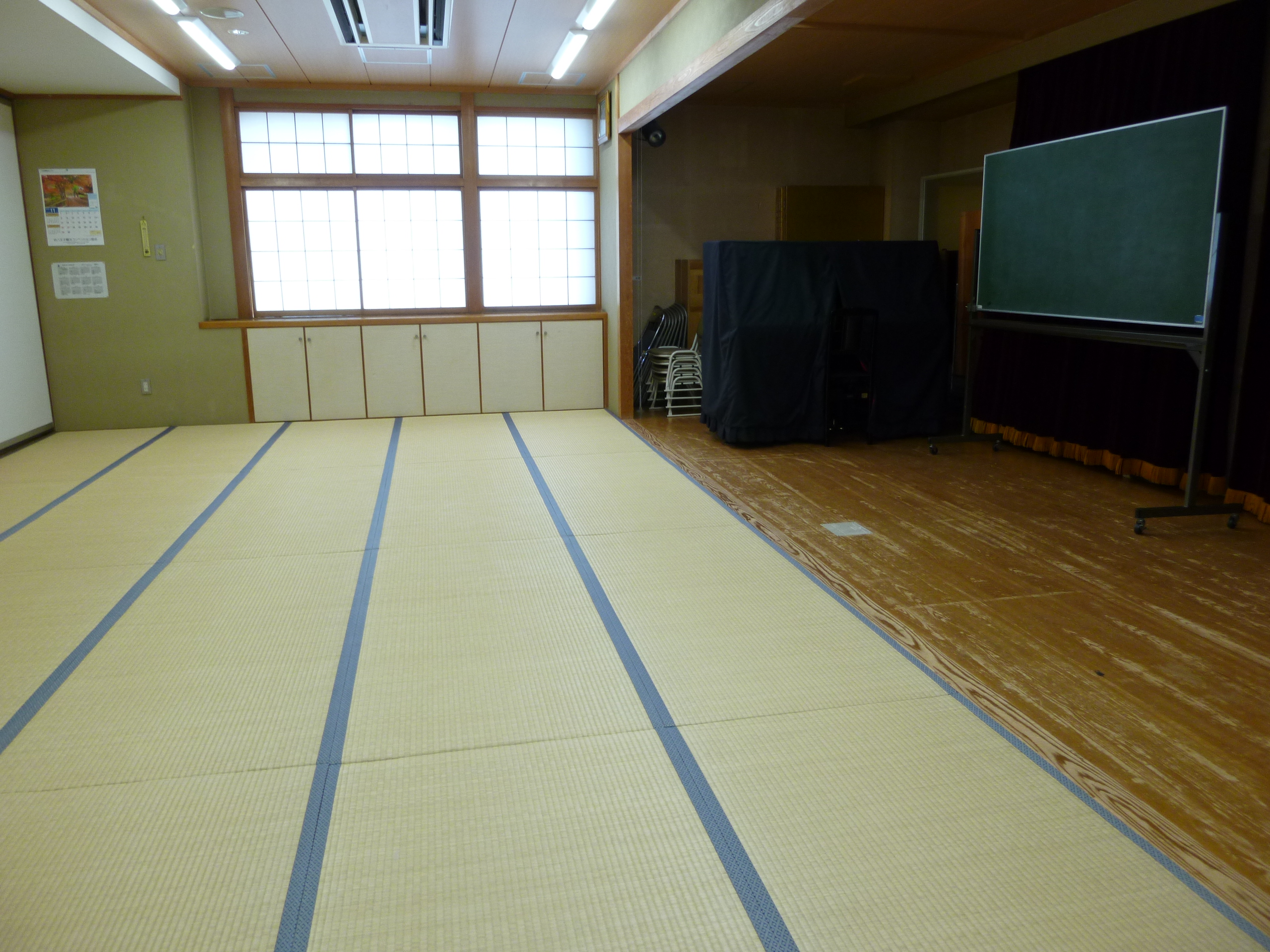 | 体育室 | 198㎡ | 150名 | 集会、講習会、映写会などのほか、軽いスポーツにもご利用ください。 | ||