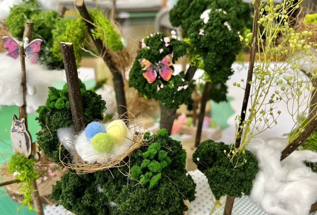 高尾の森林の枝をつかい、みんなで森をつくりました。