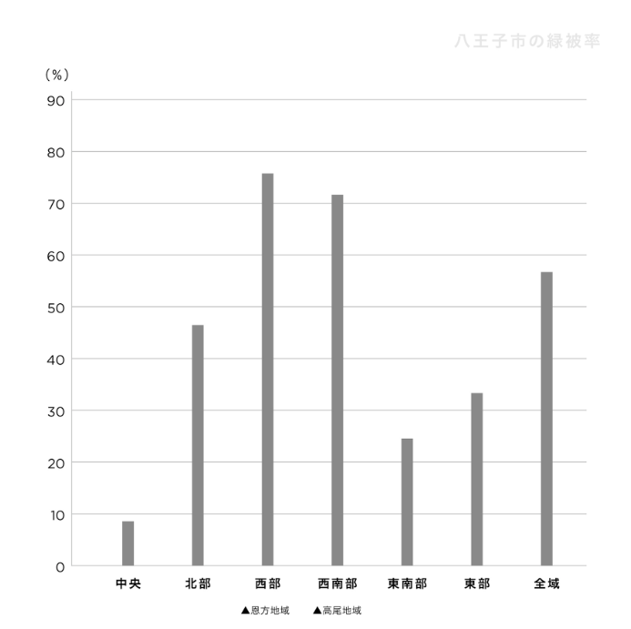 ※ 八王子の緑被の状況のチャートは、クリエイティブ・コモンズ表示4 . 0日本ライセンスのもとに提供されています。