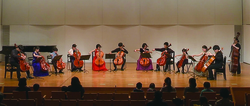 若きチェリストのソロ演奏と参加者全員によるチェロのアンサンブル演奏。