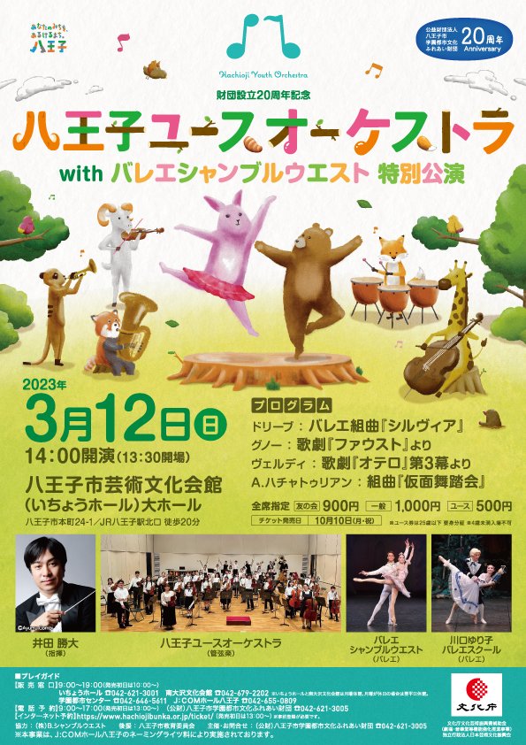【終了しました】【財団設立20周年記念】八王子ユースオーケストラ with バレエシャンブルウエスト 特別公演