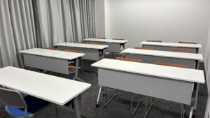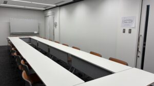 | 付帯設備 | 10台(サイズ1500×450×h720mm)※移動可、ホワイトボード、案内板(B4横)、洋服掛け、傘立て等 |