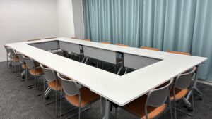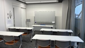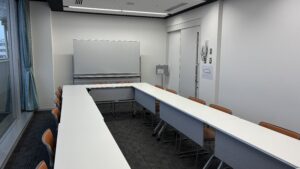 | 付帯設備 | 8台(サイズ1500×450×h720mm)※移動可、ホワイトボード、案内板(B4横)、洋服掛け、傘立て等 |