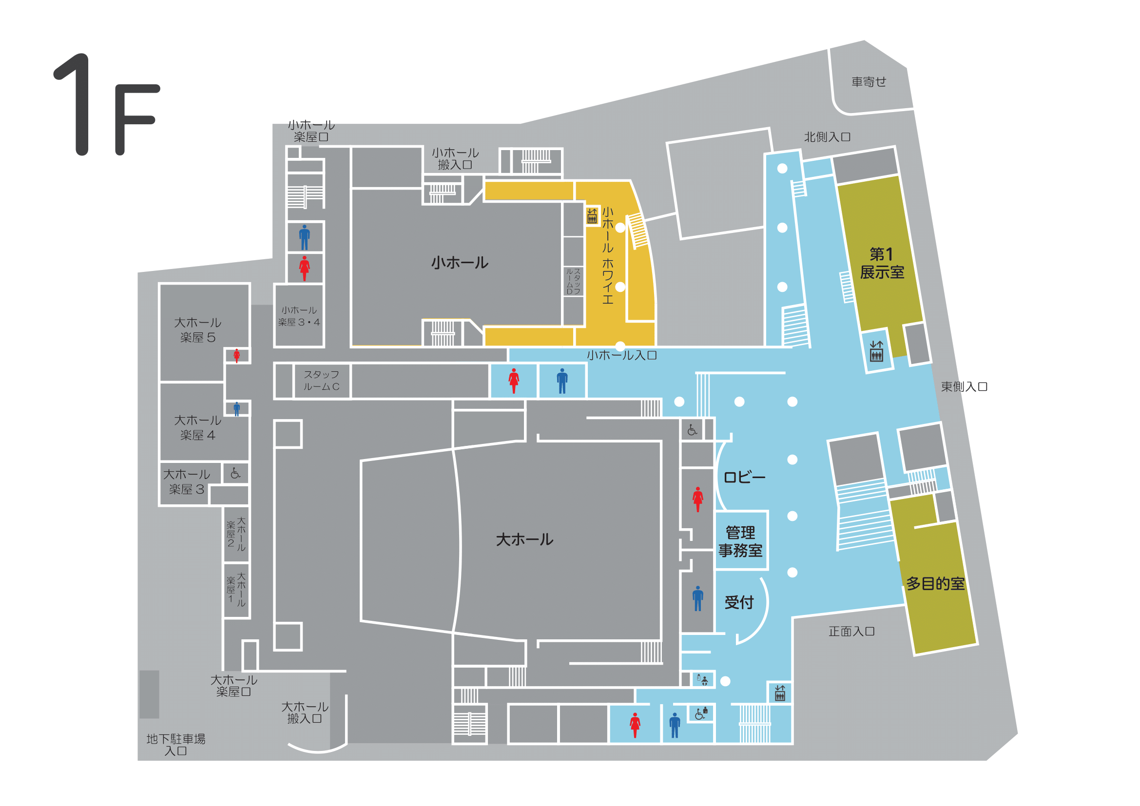 第1展示室 概要 絵画や彫刻等の創作活動の発表の場として最適なギャラリーとして、個展やグループ展などにご利用いただけます。 また机とイスをご使用になれば会議や研修、面接等に、そして上敷や姿見(鏡)をご利用になれば、着つけ教室等にもご利用いただけます。