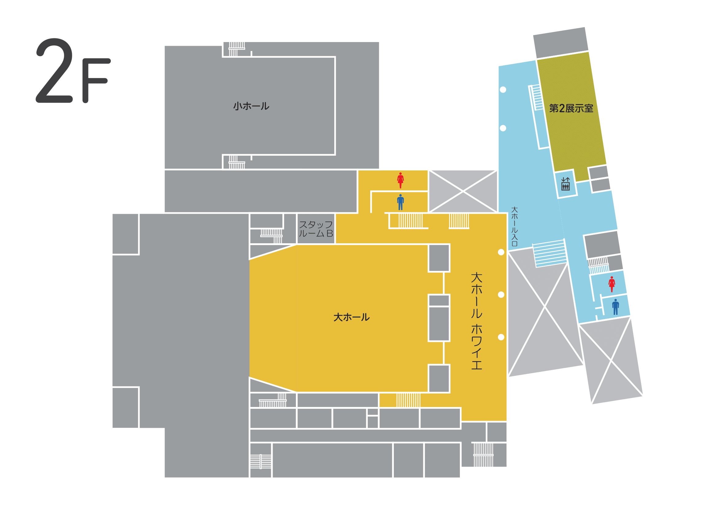 第2展示室 概要 絵画や彫刻等の創作活動の発表の場として最適なギャラリーとして、個展やグループ展などにご利用いただけます。 また机とイスをご使用になれば会議や研修、面接等に、そして上敷や姿見(鏡)をご利用になれば、着つけ教室等にもご利用いただけます。