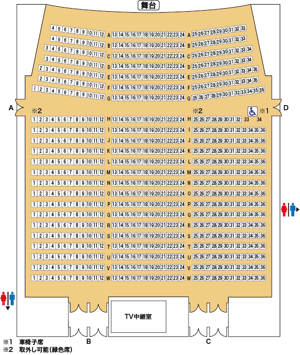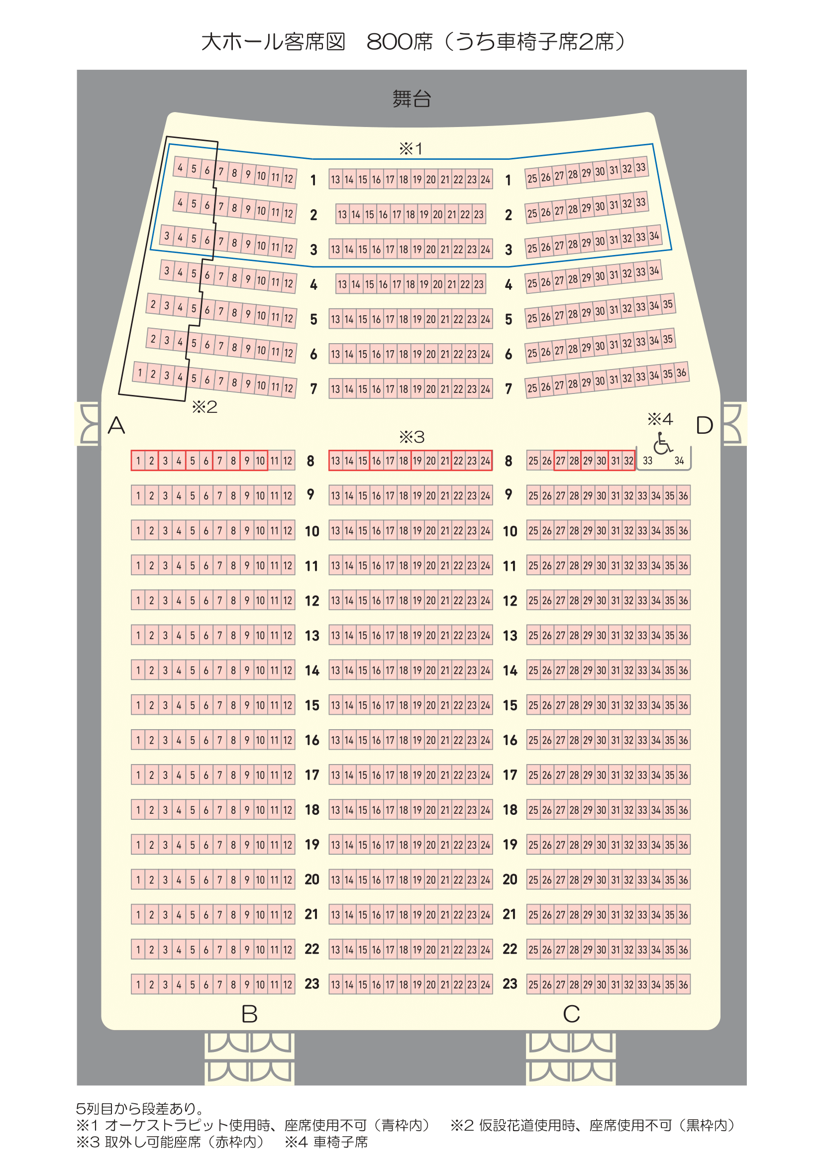 | 客席数 | ワンスロープ800席(車椅子席2席含む)客席(前方)には難聴者の方に配慮した磁気ループシステムがございます。