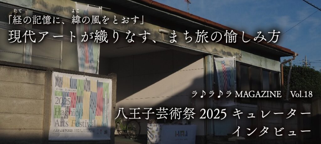 八王子芸術祭は、10年かけて八王子市内の5地域を巡る長期にわたるアートプロジェクト。2023年に続き、第2回目となる今回は、織物産業で栄えた中野・大和田・小宮・石川エリアで開催されます。キュレーターの田坂和実さんと原ちけいさんに、芸術祭の核となるコンセプト、キュレーションの舞台裏、見どころ、そして地域に根ざしたアートの役割などお話を伺いました。