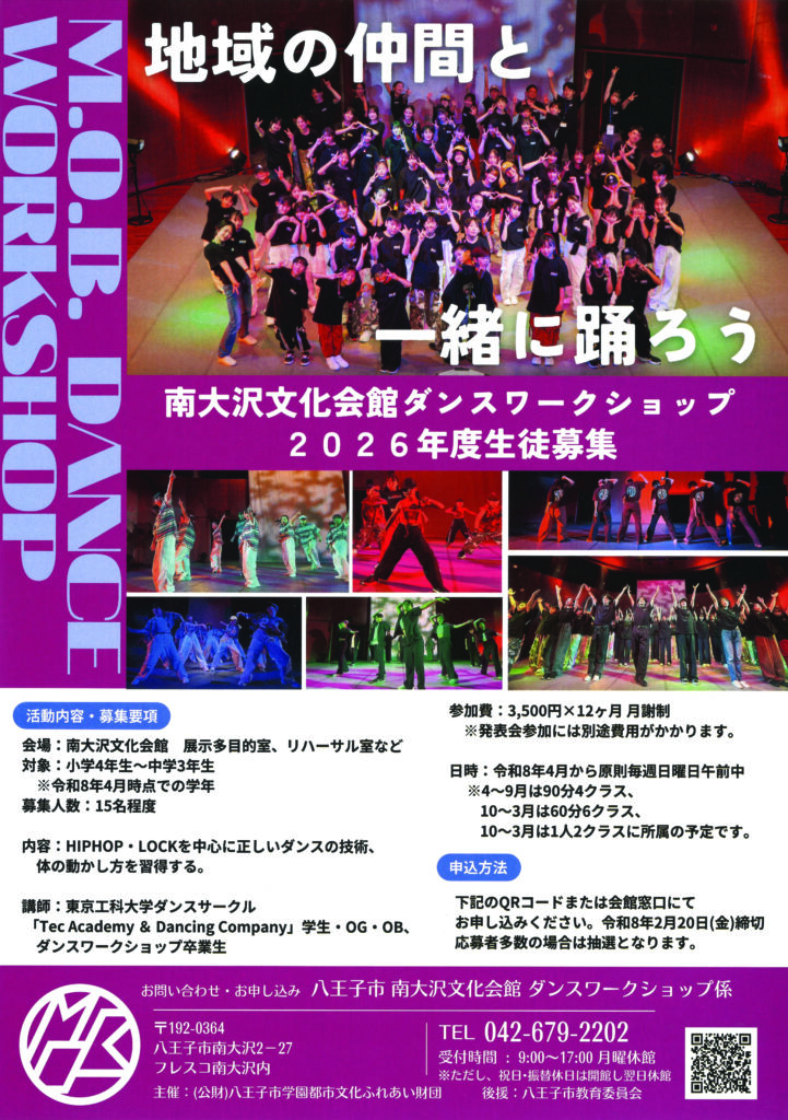 南大沢文化会館ダンスワークショップの2026年度新規参加生徒を募集します。