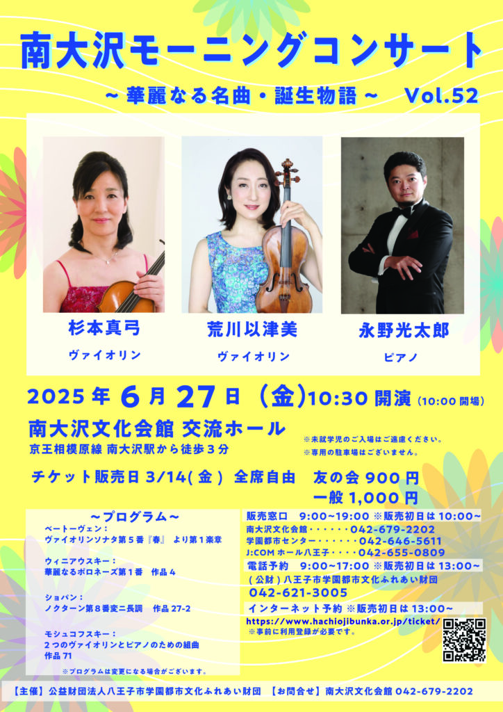 | 主催 | 公益財団法人八王子市学園都市文化ふれあい財団 南大沢文化会館 |