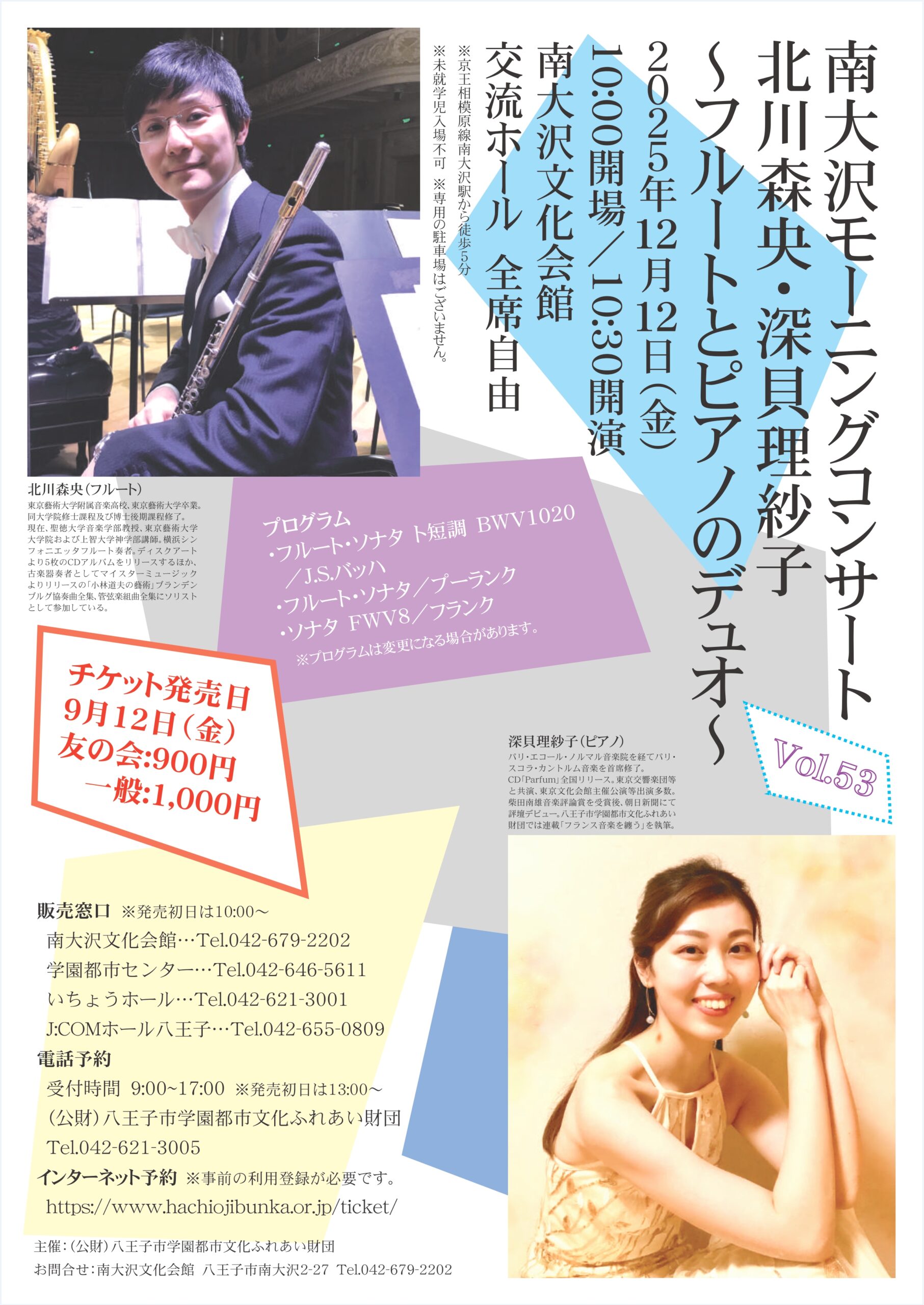 | 主催 | (公財)八王子市学園都市文化ふれあい財団 お問合せ:南大沢文化会館 042-679-2202 |