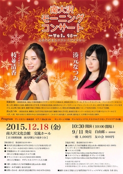 南大沢モーニングコンサートも16回目を迎えました。今回は実力派若手演奏家によるヴァイオリンとピアノの演奏をお楽しみください。