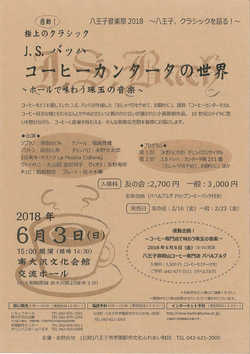 八王子音楽祭2018~八王子、クラシックを語る!~ 極上の〈感動!〉クラシック「J.S.バッハ コーヒーカンタータの世界」 ~ホールで味わう珠玉の音楽~