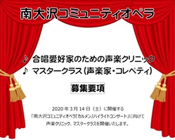南大沢コミュニティオペラ マスタークラス(声楽家・コレぺティ)【参加者募集】 【募集は終了しました】