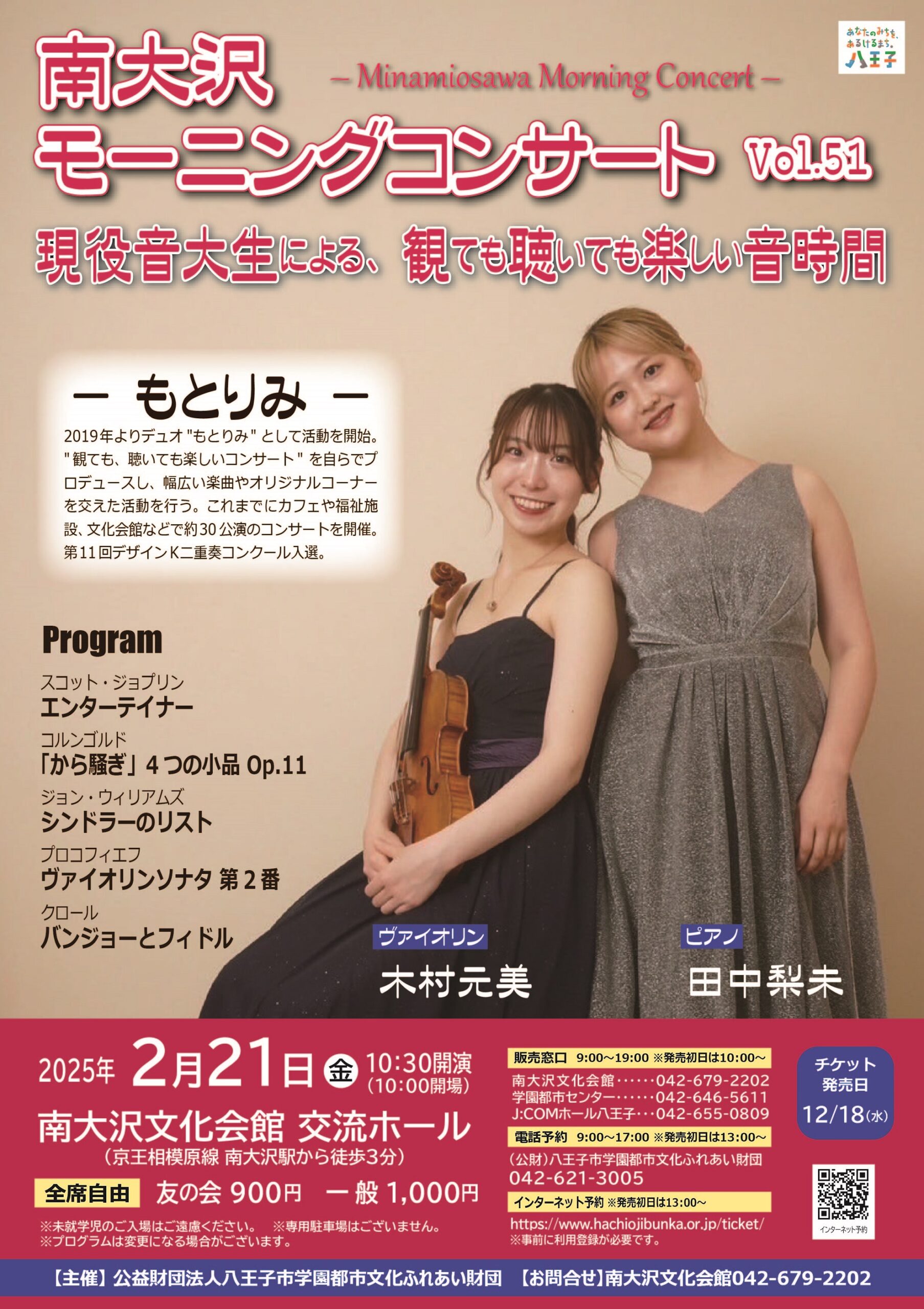 | 主催 | 公益財団法人八王子市学園都市文化ふれあい財団 南大沢文化会館 |