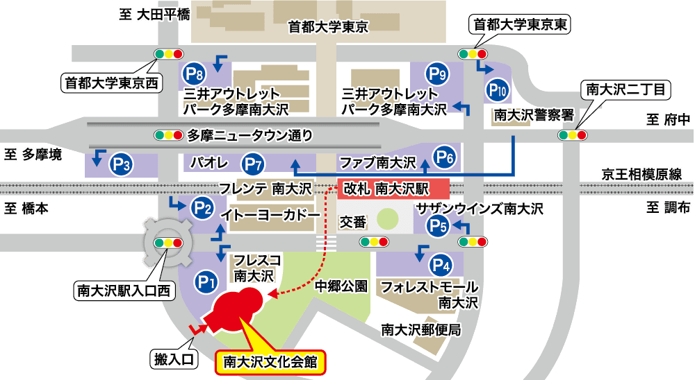 車両制限など詳細は各駐車場にお問合せください。各駐車場におけるトラブルについては、南大沢文化会館は一切責任を負いません。
