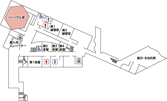 | 附属設備 | レッスンバー、バレエシート、鏡、長机2本、折り畳み椅子20脚、譜面台10本 |