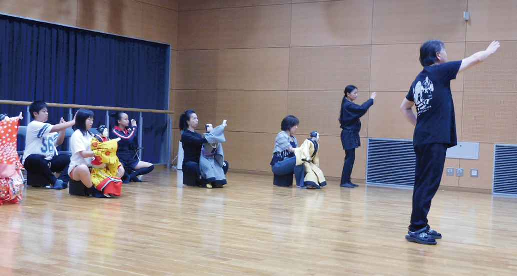 家元をはじめとする八王子車人形西川古柳座の座員が人形遣いの基本からていねいに指導します。